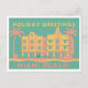 Bring the magic of Miami Beach to the holidays with this stunning horizontal Art Deco Christmas card, featuring pastel seafoam green, flamingo pink, and lemon yellow. The front showcases iconic Deco-style hotels, palm trees, and a flamingo silhouette—all designed in a nostalgic 1930s Miami Beach palette. The matching back design includes a radiant sunrise motif framed by tropical palms, creating a polished, stylish, and cohesive look.