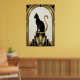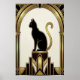 Elegance in simplicity. A slender black cat silhouette is perfectly centred within a massive white and gold archway. This high-contrast masterpiece focuses on clean lines and architectural framing, providing an ultra-sophisticated touch to minimalist luxury interiors.