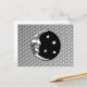 Postcard in an Art Deco moon and stars design in brushed silver with enamel look black on a faux silver metallic background