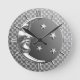 Art Deco Moon and Stars, Haematite Grey & Silver Round Clock