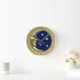 Art Deco Moon and Stars, Navy Blue and Gold Round Clock