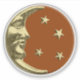 Sticker in a classic Art Deco moon and stars design in brushed gold with an enamel look rust brown / terracotta background