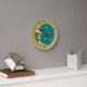 Art Deco Moon and Stars, Teal and Gold Round Clock