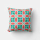 This throw pillow has an art deco design of hexagons, pentagons, squares, diagonal lines that look like a mosaic.