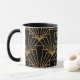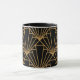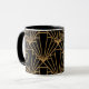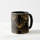 This mug has an Art Deco design of diamonds and triangles in gold on a field of black.