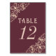 Art Deco Nouveau | Burgundy Rose Gold Ornamental Table Number