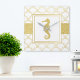 Art Deco Ocean Wave Gold Seahorse Beach House Square Wall Clock