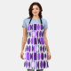 This apron has an art deco design made of ovals and half ovals in white and shades of purple.