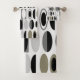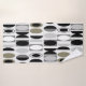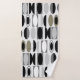 This towel set has an art deco design made of ovals and half ovals in black, white, and shades of grey.