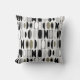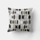 This throw pillow has an art deco design made of ovals and half ovals in black, white, and shades of gray.