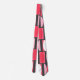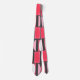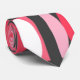 This tie has an art deco design made of ovals and half ovals in white and shades of pink on a field of dark grey.