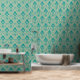 Art Deco Pattern 01 - Teal on Off-White Wallpaper
