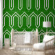 Art Deco Pattern 05 - White on Forest Green Wallpaper
