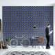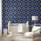 This unique wallpaper features a classic Art Deco pattern in light navy blue and black. A vintage geometric design recreated by Alma Wad, it adds a touch of elegance and sophistication to any room, making it a perfect choice for those who appreciate timeless style and intricate artistry.