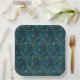 Art Deco pattern with gold geometric shapes on a deep teal background, featuring arch motifs and dotted accents, creating an elegant vintage feel.