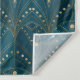 Art Deco pattern with gold geometric shapes on a deep teal background, featuring arch motifs and dotted accents, creating an elegant vintage feel.