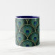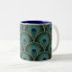Art Deco Peacock Feather Geometric Pattern Two-Tone Coffee Mug