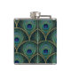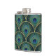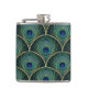 Art Deco Peacock Feather Pattern in Teal & Gold Hip Flask