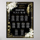 Personalise this vintage art deco floral Great Gatsby roaring 20s theme seating chart sign poster easily and quickly, simply press the customise it button to further re-arrange and format the style and placement of the text. Featuring a chic art deco frame, ivory white orchid and lily floral, sparkling pearls and black and gold colour scheme. Matching items available in store! (c) The Happy Cat Studio.
