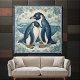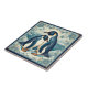 Art Deco Penguin Ice Bird Couple Snow Ocean Floral Ceramic Tile