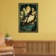 Art Deco Pine Tree Silhouette Gold Teal Cliff Post Poster
