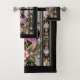 Elevate your home décor with this Art Deco black and pink flamingo retro towel set, featuring a bold geometric flamingo design inspired by classic 1920s and 1930s Art Deco style. Faceted rainbow and pink flamingos, clean symmetrical lines, and jewel-like detailing create a striking vintage-modern look that blends retro elegance with contemporary luxury. Theflamingo represents fun, tropical weather and luxury making this design both meaningful and visually captivating.