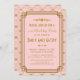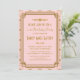These birthday party invitations feature a pink and gold colour palette, a geometric frame, geometric patterns, and other stylistic details all inspired by Art Deco and the roaring twenties. You can customise the sample text fields to your liking.