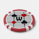 These poker chips feature an Art Deco inspired original design w/a card playing theme composed of bright red & black card suit symbols (diamond, club, heart & spade) centred where the black thick & thin horizontal & vertical lines of a grid meet, w/a large custom text field for your monogram in the centre.