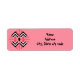 These return address labels have an art deco quilt-inspired design of diamond shapes in black, white, and pink on a field of watermelon.