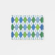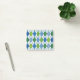 These Post-It notes have an art deco design of diamond shapes made from overlapping angles in black lines coloured in shades of blue and green with diagonal black lines making the design look like argyle