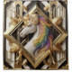 Turn your bathroom into a bold statement piece with this Art Deco–inspired unicorn shower curtain. Featuring a striking black and white geometric background accented with luxe gold detailing, the design channels vintage glamour with a modern fantasy twist. At the center, a majestic unicorn with flowing rainbow hair shimmers with faux-glitter effects, adding vibrant color and magical flair without the mess of real glitter.