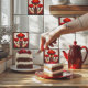 Art Deco Red Black White Abstract Floral Ceramic Tile
