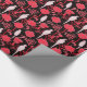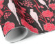 ART DECO RED FLOWERS,WHITE PARROTS ON BLACK WRAPPING PAPER