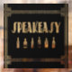 An art deco design wine label that says speakeasy and decorated with liquor bottles. A design that defines the roaring 1920's prohibition. Done in black and gold.