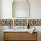 Step back in time with this stunning Art Deco-inspired ceramic tile, featuring a stylized red rose at its heart. The intricate design boasts a rich palette of deep blues, lush greens, and gleaming gold accents against a crisp white background, creating a captivating visual. This exquisite tile captures the essence of the Art Deco movement, characterized by its geometric patterns and floral motifs, making it a perfect statement piece for any space. Elevate your home decor with this elegant and timeless work of art, adding a touch of vintage sophistication and charm to your walls or backsplash. Its detailed craftsmanship and vibrant colors are sure to impress and become a conversation starter.
