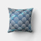 Art Deco Scales Blue Navy Ocean Geometry Marble Cushion