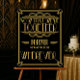 Guide your guests with vintage glamour using this Art Deco wedding seating sign, designed by The Arty Apples. Featuring bold gold typography and geometric borders on a sleek black background, it reads: “Now that we are together forever, we want you to sit wherever.” Perfect for receptions, Gatsby-themed weddings, roaring twenties celebrations, anniversaries, or black tie events, this stylish print adds 1920s elegance to your décor. A modern alternative to traditional seating plans, this sign makes guests feel welcome while enhancing your celebration with Art Deco sophistication.