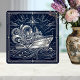 Art Deco Silver boat Ocean Waves Starry Night Ceramic Tile
