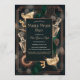 Ring in the New Year with a glamorous whodunit. This speakeasy-inspired design features an Art Deco black-and-gold frame, champagne coupes, emerald ribbon, vintage gramophone and decanter, and a moody bokeh background. The centered panel keeps details clear while the 1920s vibe sets the scene for an unforgettable mystery dinner or cocktail party.