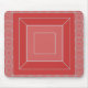 This mouse pad has an art deco design of squares with another square around it and another square with diagonal lines so it looks like a button on a keyboard.