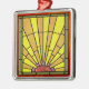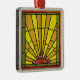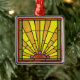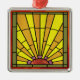 Square premium ornament with an Art Deco stained glass image of a yellow-orange sun lighting up the day with yellow and orange rays of light. See the entire Roaring 20s Ornament collection in the PARTY FAVORS section.