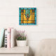 10.75” x 10.75” acrylic wall clock with an image of a stained glass artwork with Art Deco flair, reminiscent of certain 1920s works. Black orbs mark the 12, 3, 6 and 9 positions. See the entire This & That Clock collection in the HOME section.