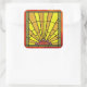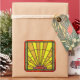 Square sticker with an image of Art Deco stained glass with golden rays of light emanating from a red-orange sun and a green border on red stained glass. See matching favour bag, gift tag and wrapping paper. See the entire Roaring 20s Sticker collection in the INVITES | Stickers & Labels section.