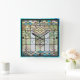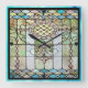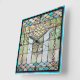 10.75” x 10.75” acrylic wall clock with an image of intricate Art Deco stained glass in pink, blue and green. Black orbs mark the 12, 3, 6, and 9 positions. See the entire Roaring 20s Clock collection in the DECOR | Clocks section.