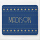 Add a touch of Art Deco style with this personalized mousepad! Rows of stars paired with retro typography. Customize the template with a name or location. A stylish gift for friends and family! Printed colors: navy blue and gold.