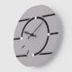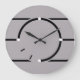 A very modern looking round clock in grey with black lines in the Art Deco style.