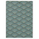 Abstract geometric wavy pattern in Art Deco style on with teal blue and copper coloured waves and fan decoration on dark teal blue colour background.