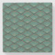 Abstract geometric wavy pattern in Art Deco style on with teal green and copper coloured waves and fan decoration on dark teal green colour background