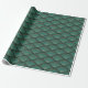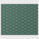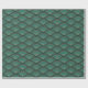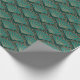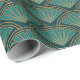 Abstract geometric wavy pattern in Art Deco style on with teal green and copper coloured waves and fan decoration on dark teal green colour background