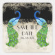 COLOR PALETTE: black, cream, tan, aqua blue, royal blue, green, purple and gold.  DESIGN COLLECTION: These are matching Save the Date Stickers or Seals for matching envelopes or to use on favours for receptions and bridal showers.  This artwork is a mix of brand new watercolors by Audrey Jeanne Roberts and layers of vintage art elements including:Carved etched printer's ornament decorative etchings with swirls, floral elements flowers, leaves and baroque flourishes.  New art includes the beautiful peacock  with long feather tail that was painted in an art deco style in watercolors.  It is layered over a hand painted antique lace parchment background that is aged, grunged and textured.  On the reverse side is same background and etchings with your wedding invitation information in the easy to customise template fields.  If you need any help email us and we'll be happy to help.